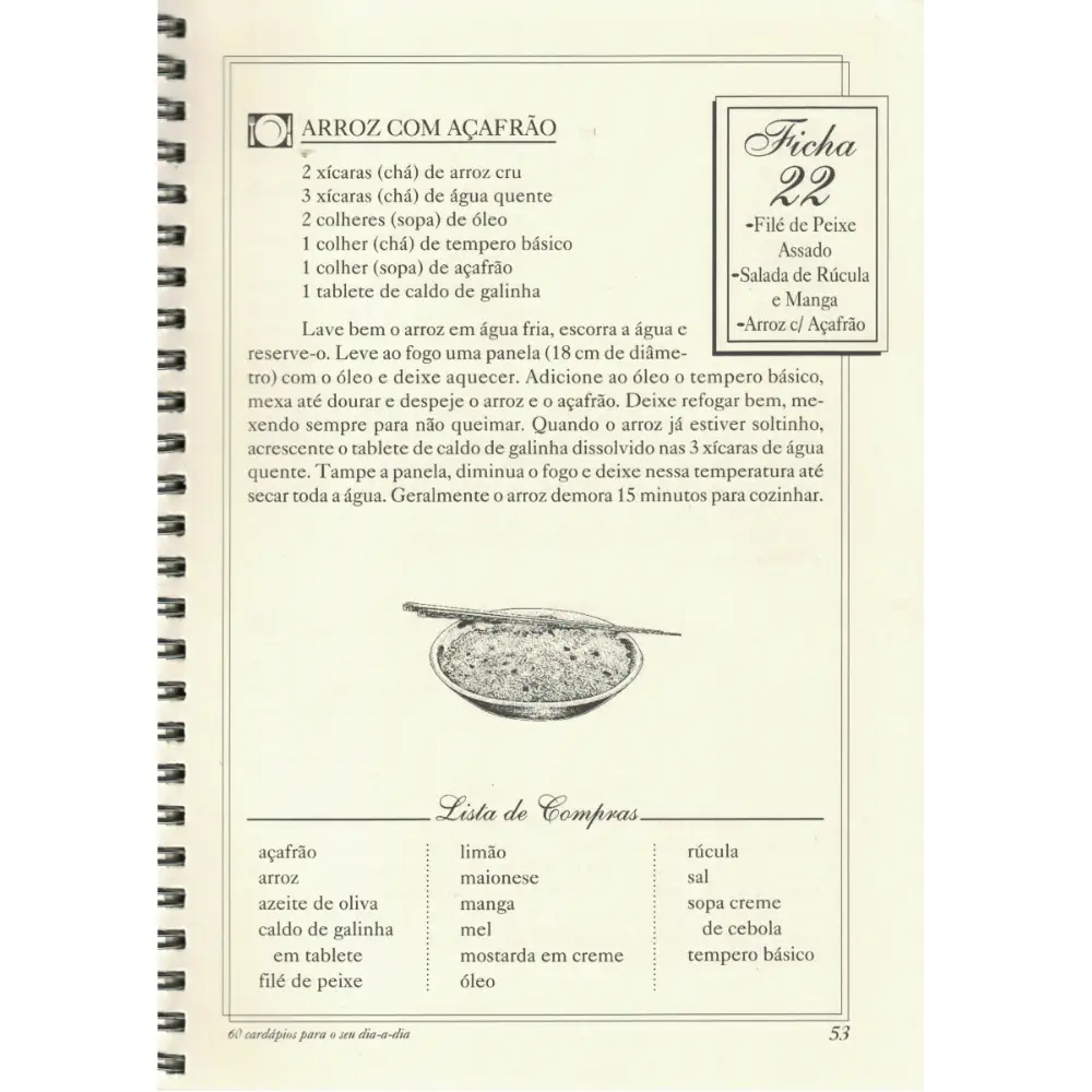 Este livro apresenta sugestões que poderão facilitar o nosso dia-a-dia, além de se tornar um guia útil para aqueles que necessitam cozinhar. Criamos 60 cardápios, com receitas testadas, algumas de nossa autoria, outras sugeridas por parentes e amigos. São receitas escritas em linguagem simples, que poderão ser executadas com sucesso, mesmo por pessoas totalmente inexperientes em culinária. Elaboramos, ao final de cada cardápio, uma lista dos ingredientes necessários, para facilitar as compras semanais.