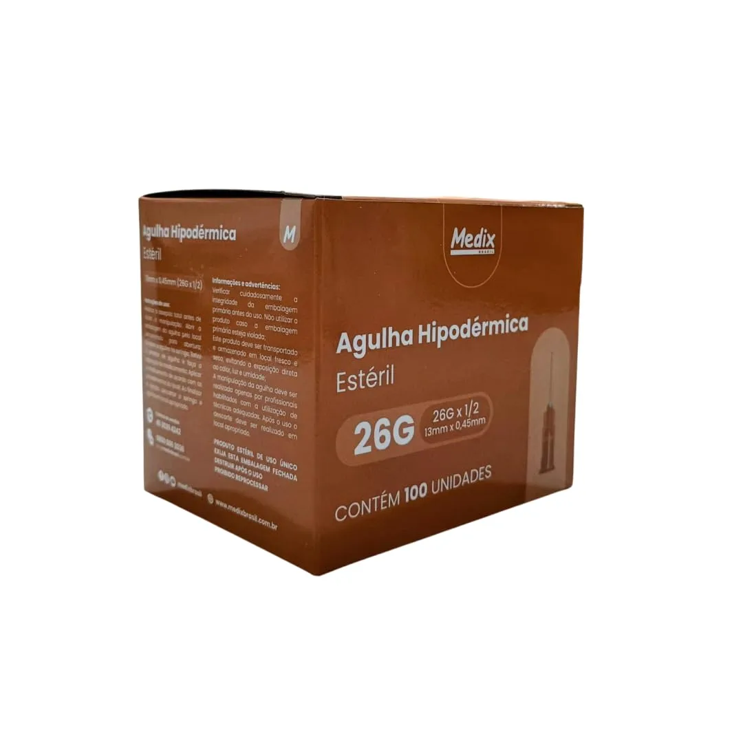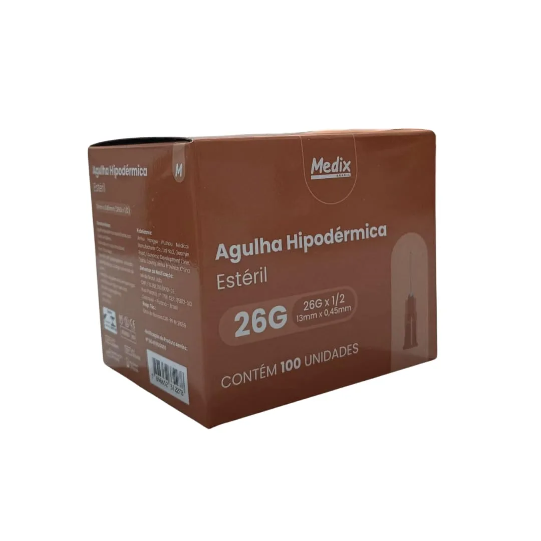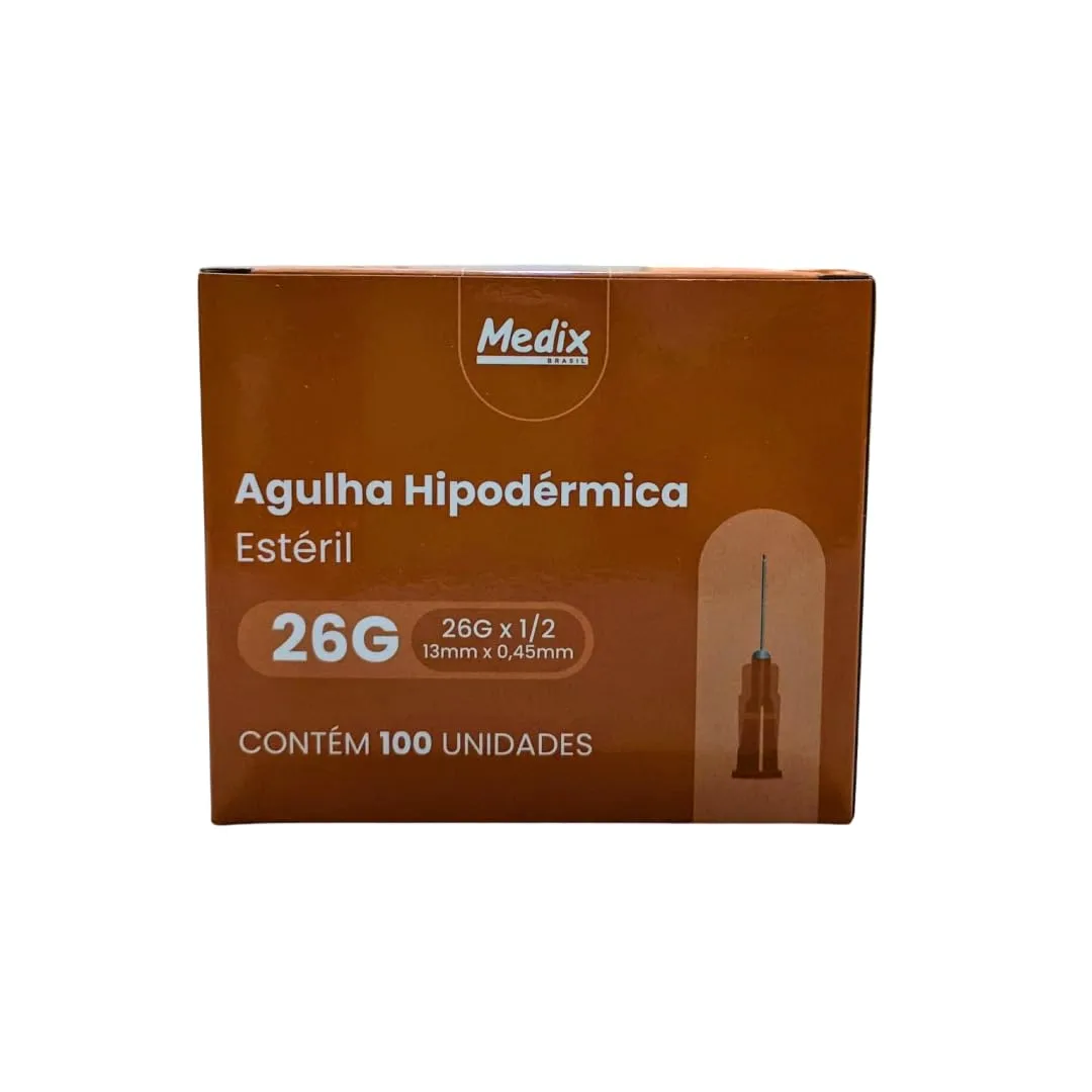 Agulha Hipodérmica Descartável 13×0,0,45mm 26G Cx C/100 Unidades