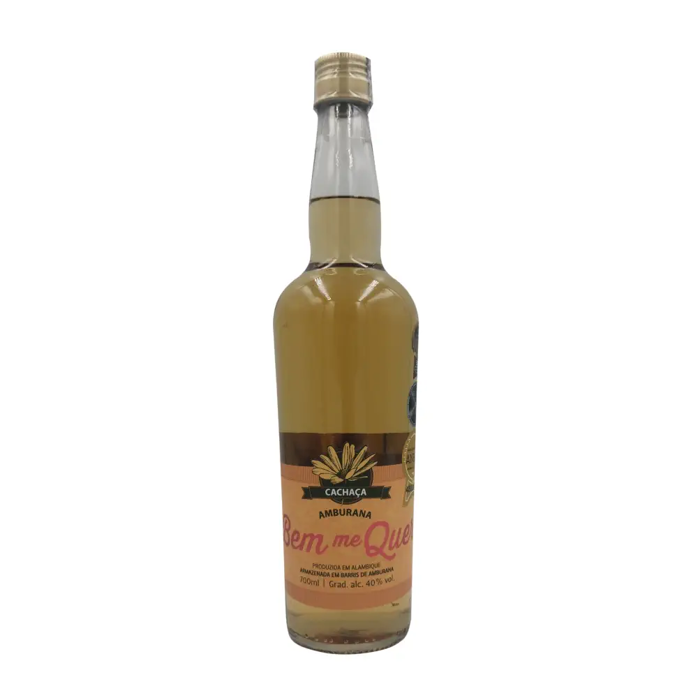 Cachaça Bem me Quer Amburana 700ml é armazenada por um ano e meio em barris de amburana. A madeira brasileira confere à bebida um sabor frutado e aroma inigualáveis. Leve, possui graduação alcoólica de 40%. De corpo médio, macio e equilibrado, tem excelente acidez. Harmoniza muito bem com sobremesas.