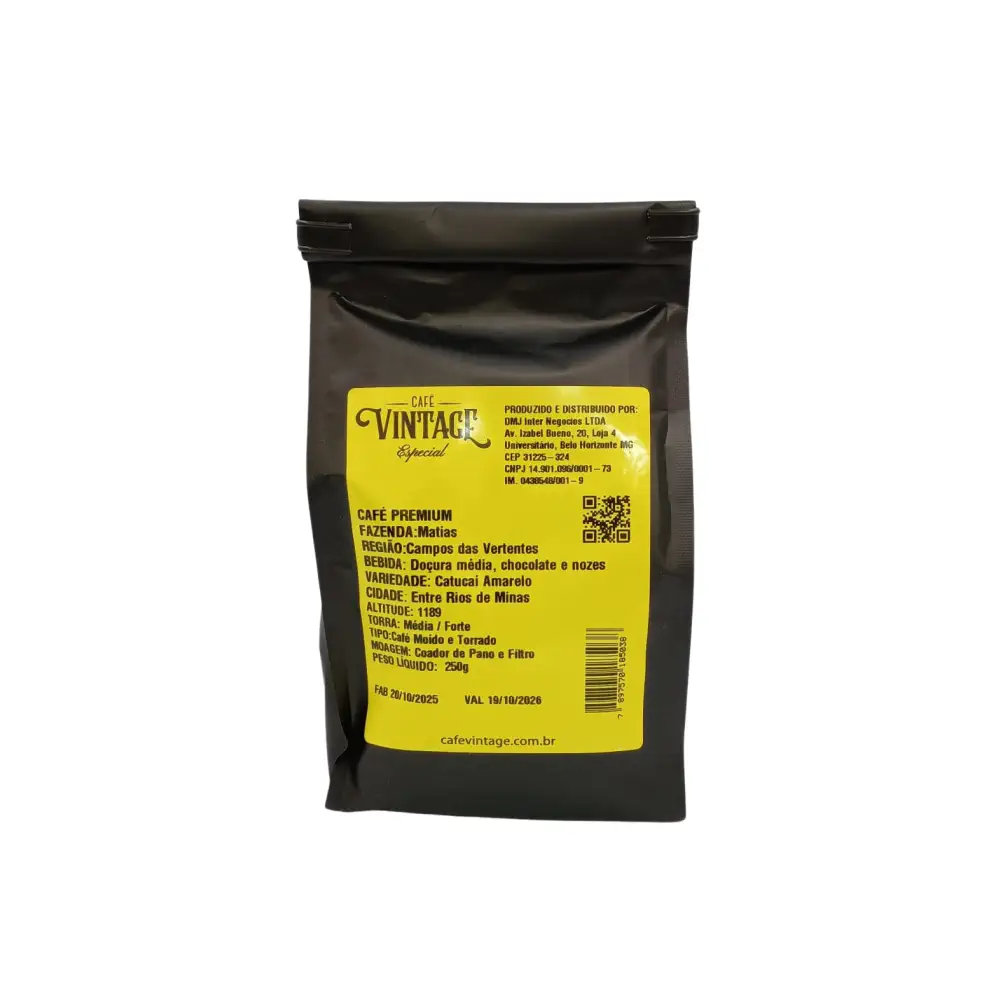 O Café Vintage Especial é a escolha perfeita para quem valoriza sabor, origem e cuidado em cada detalhe. Produzido com grãos 100% Arábica, cuidadosamente selecionados na Fazenda Matias, na região de Campos das Vertentes (MG), este café traduz a tradição mineira em uma bebida equilibrada e marcante.