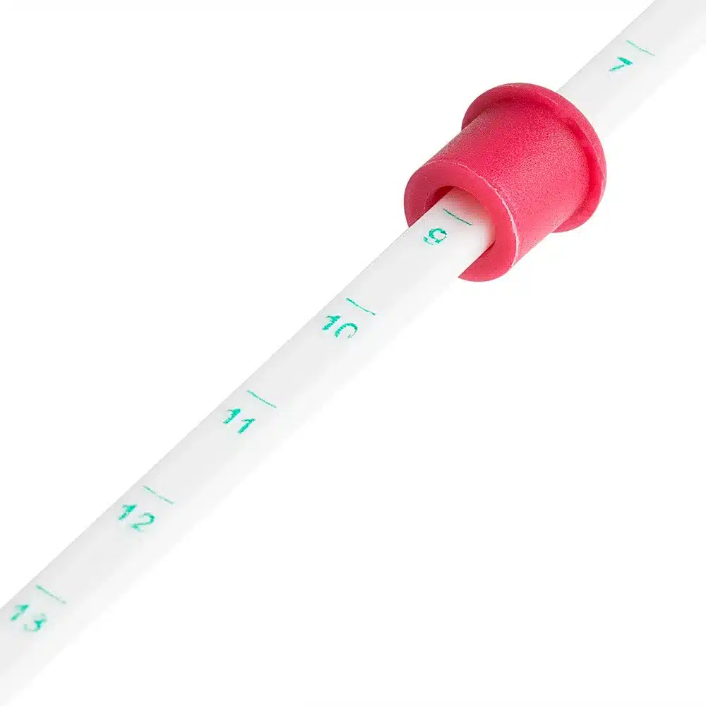 Possui haste levemente curva com segmento centimetrado de 15 cm, graduado de 4 a 15 cm com resolução de 1 cm, facilitando a leitura. Conta com anel cilíndrico móvel (stopper), que permite ajuste e maior controle na medição. Fabricado em poliestireno na cor branca, possui comprimento total de 25 cm e é esterilizado para uso único, garantindo máxima higiene e segurança.
