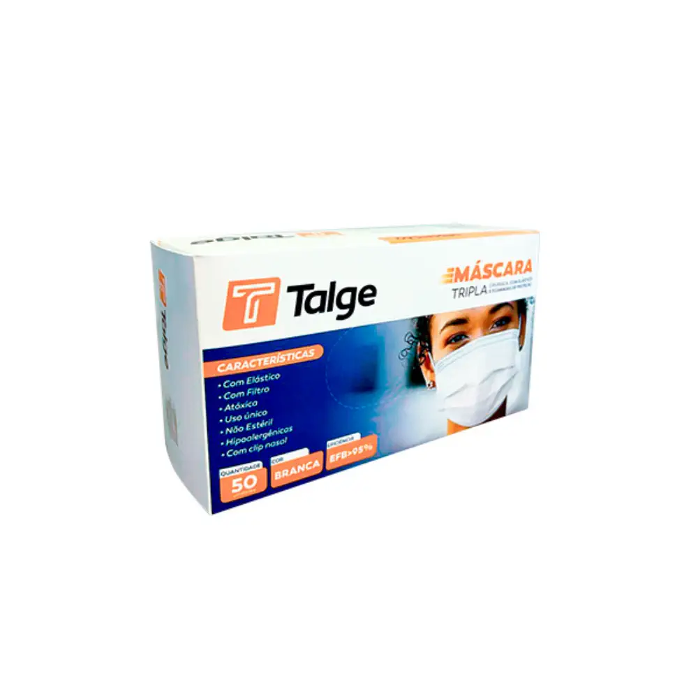 Máscara Talge Tripla Descartável Branca – Caixa com 50 Máscaras